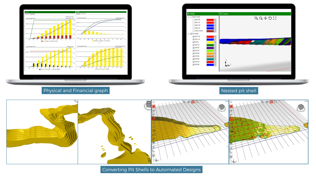 - Determining the Optimum pits for a deposit for a given cost, sale prices, and geotechnical slope consideration